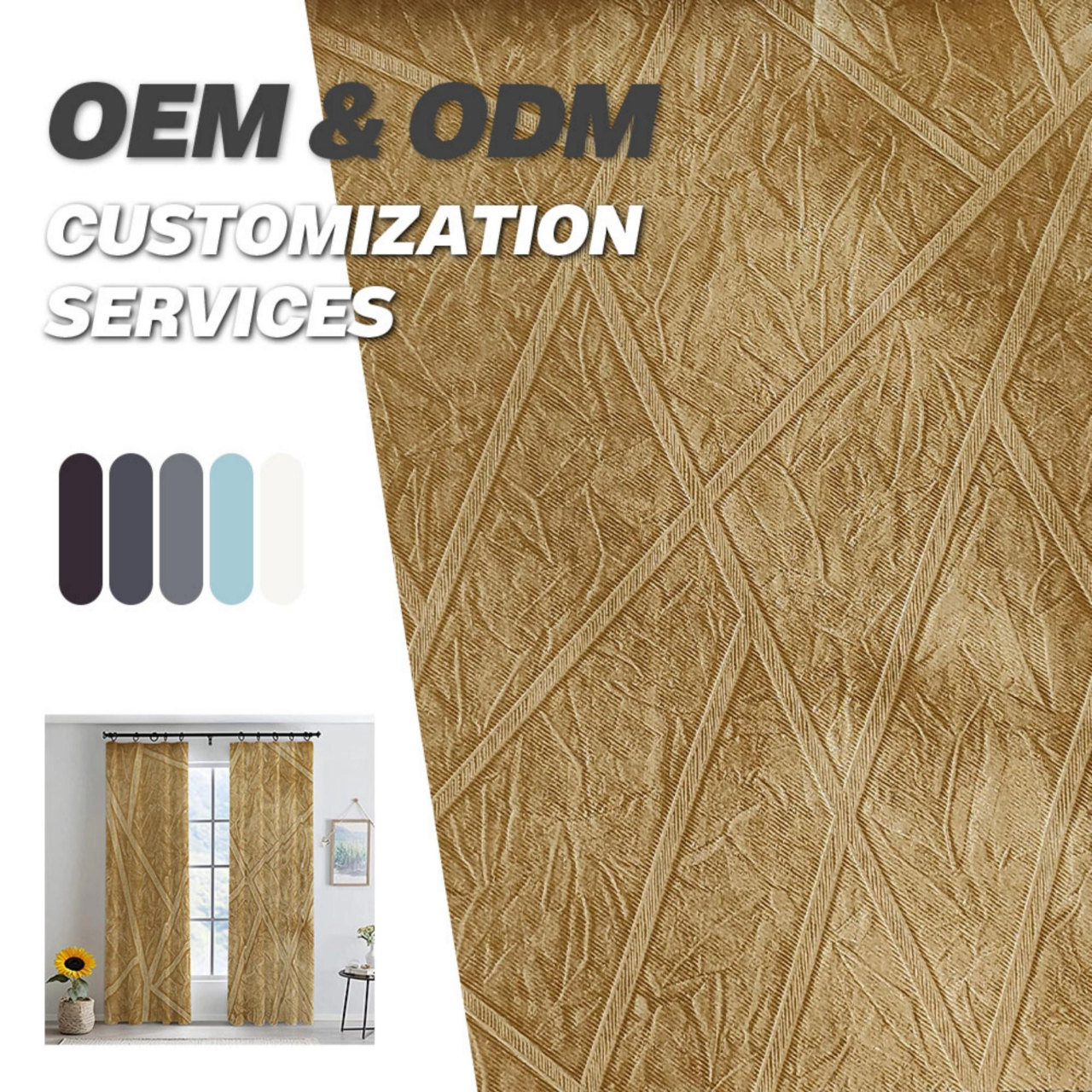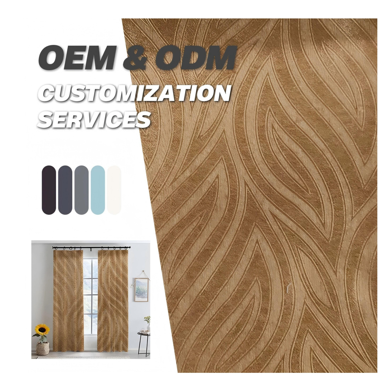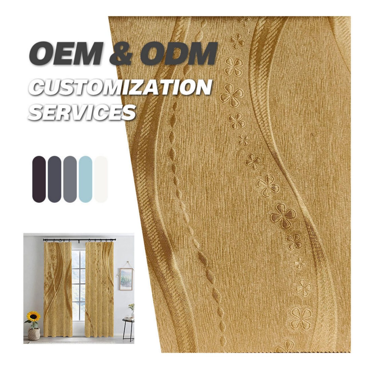 高精密遮光窗帘 加厚加密涤纶面料 3D立体压花持久定型