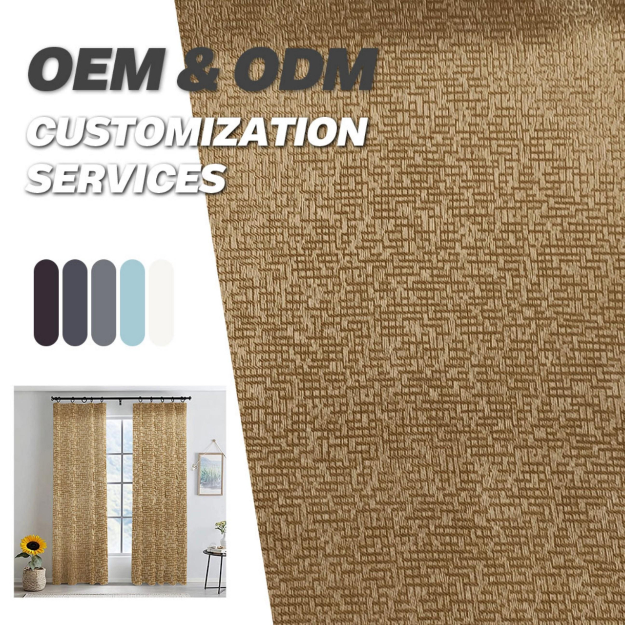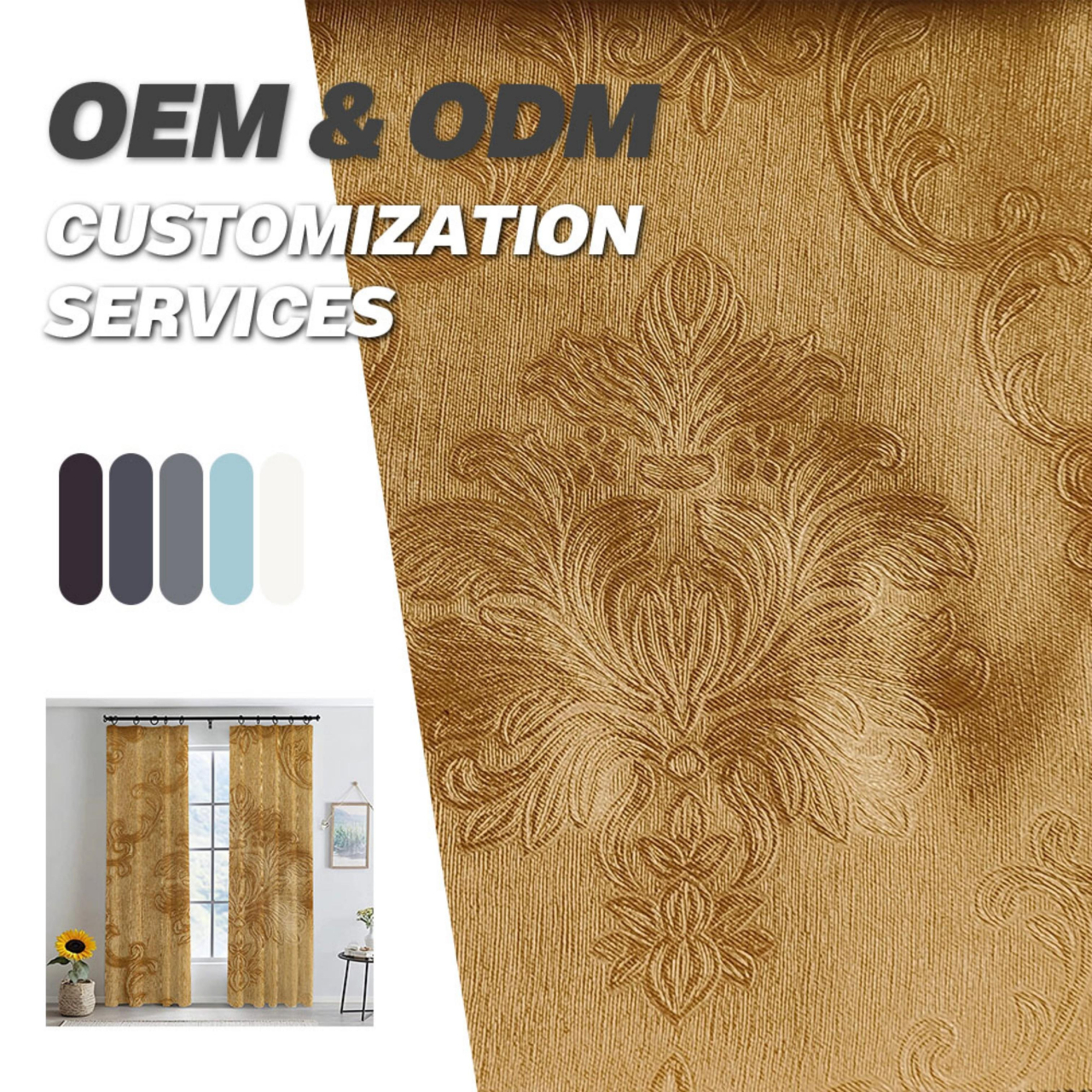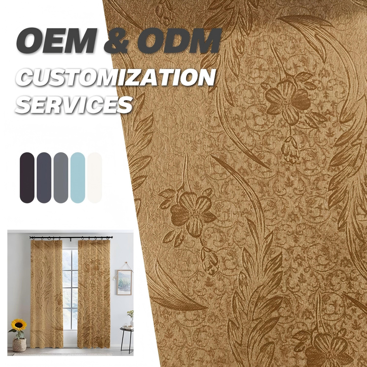 高精密遮光窗帘 加厚加密涤纶面料 3D立体压花持久定型