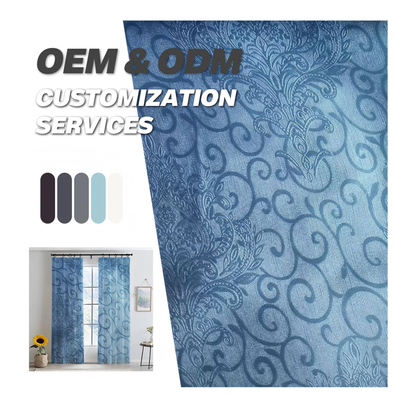 高密纯涤压花窗帘 加厚遮光基底 垂感持久不变形