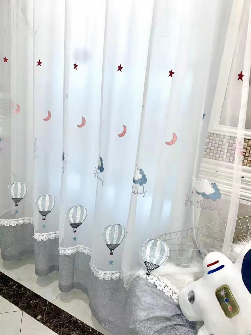 新款云朵热气球儿童绣花窗纱男孩女孩房间北欧卧室小清新