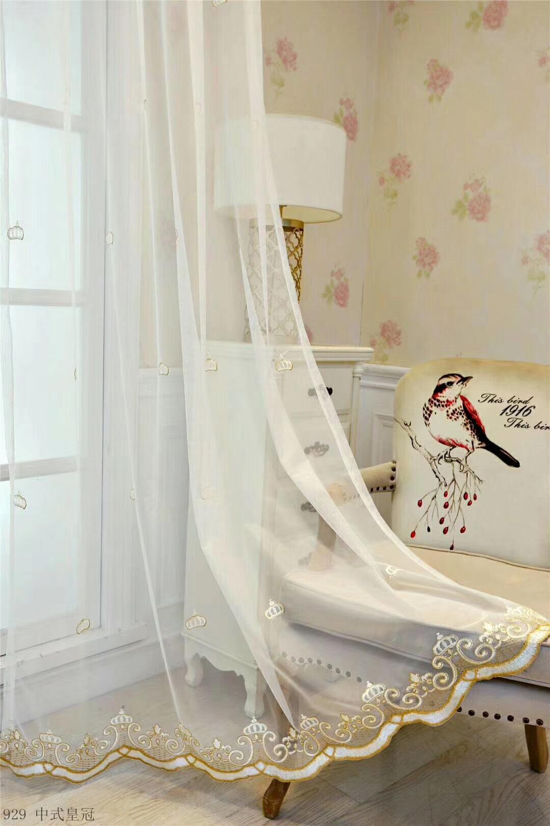 轻便持久耐用刺绣窗纱薄纱皇冠窗帘白纱配纱客厅卧室成品