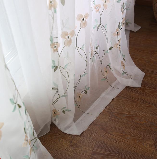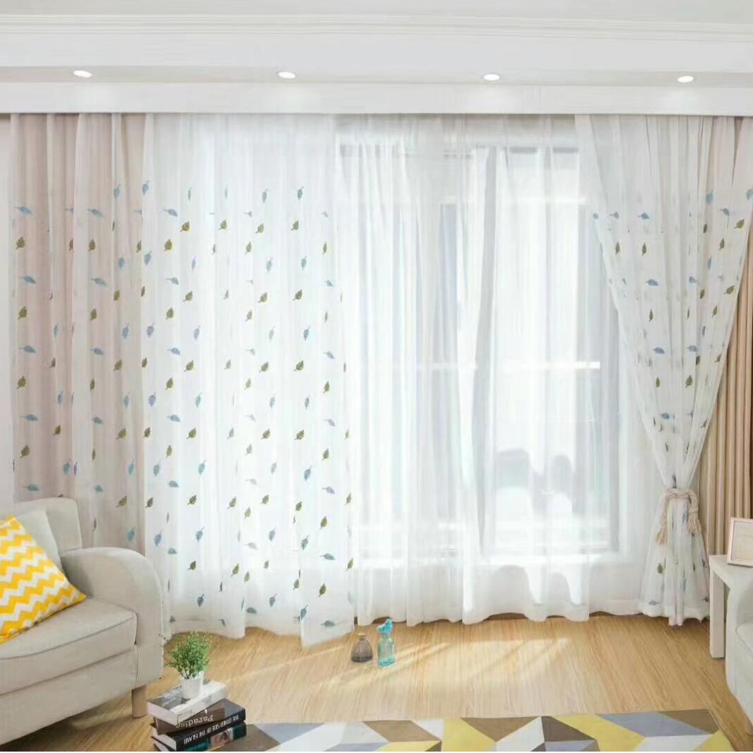 轻便持久耐用刺绣窗纱薄纱植物窗帘白纱配纱客厅卧室成品