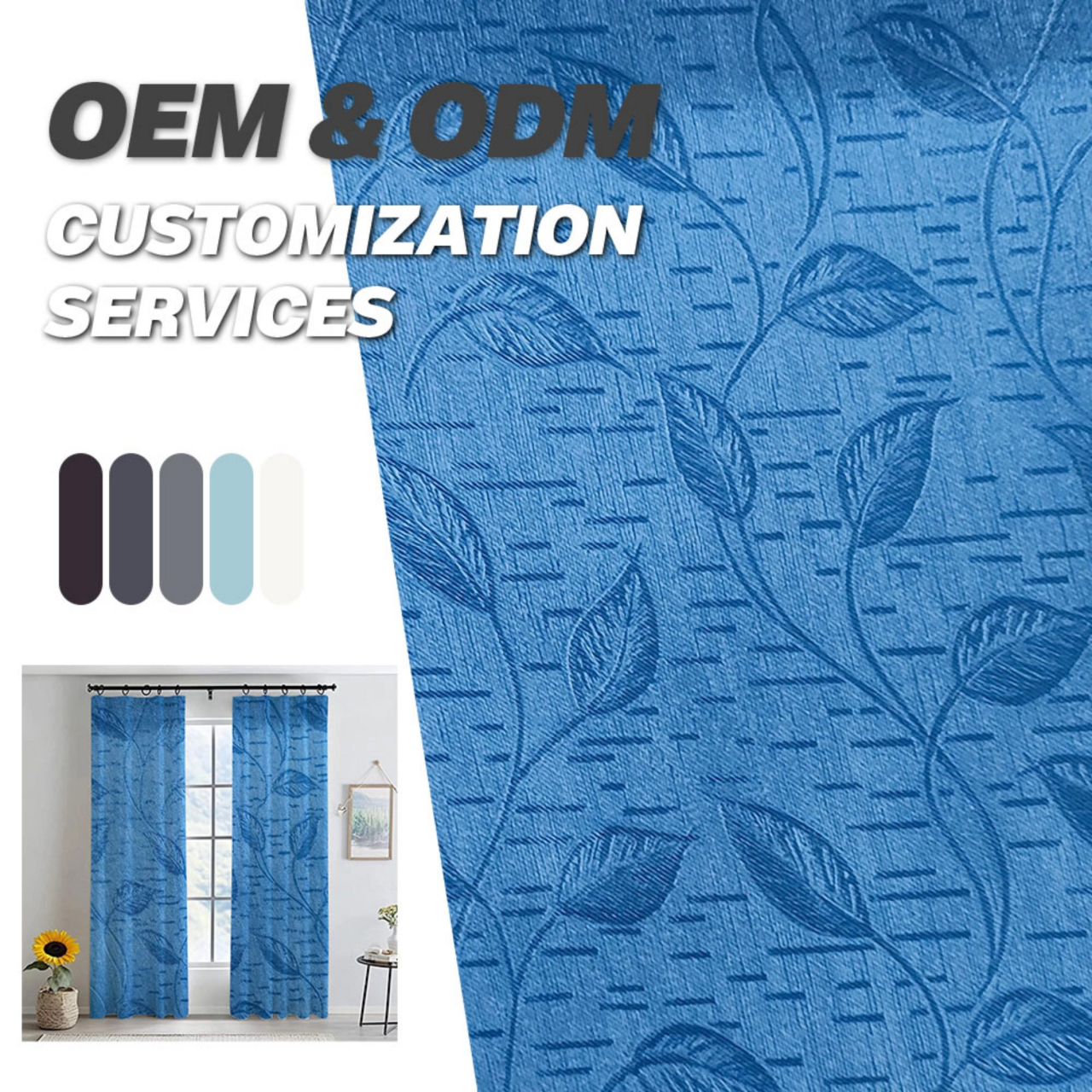 压花叶子窗帘打孔穿杆成品亚马逊北欧风批发厂家现货直销
