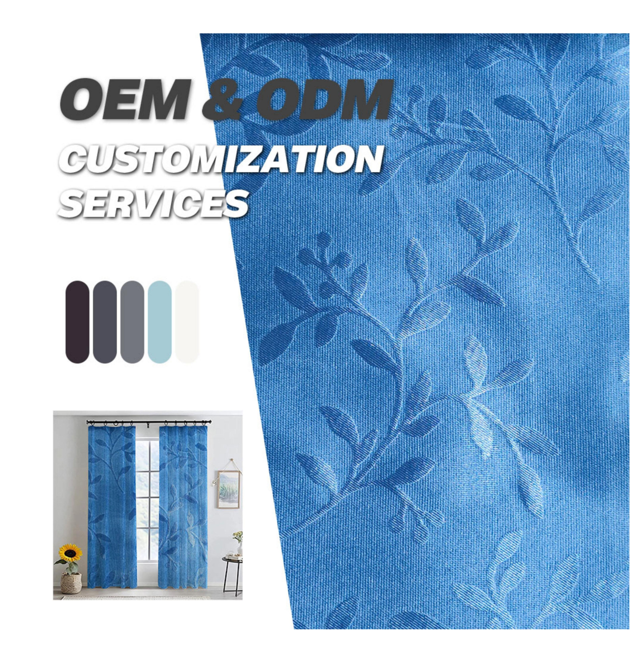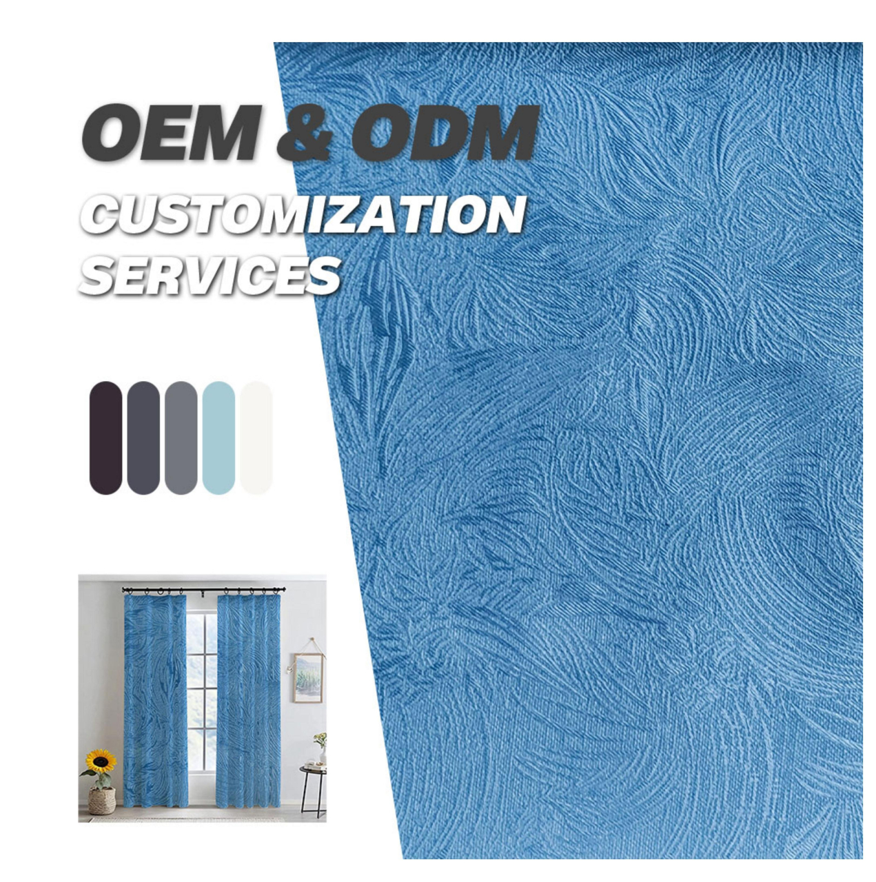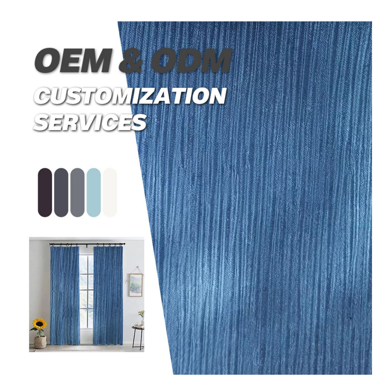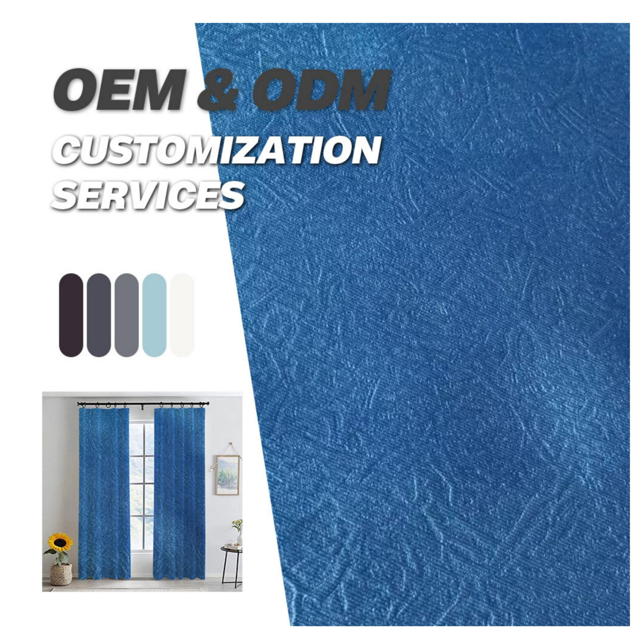 亚马逊跨境蓝色压花窗帘穿杆绍兴外贸