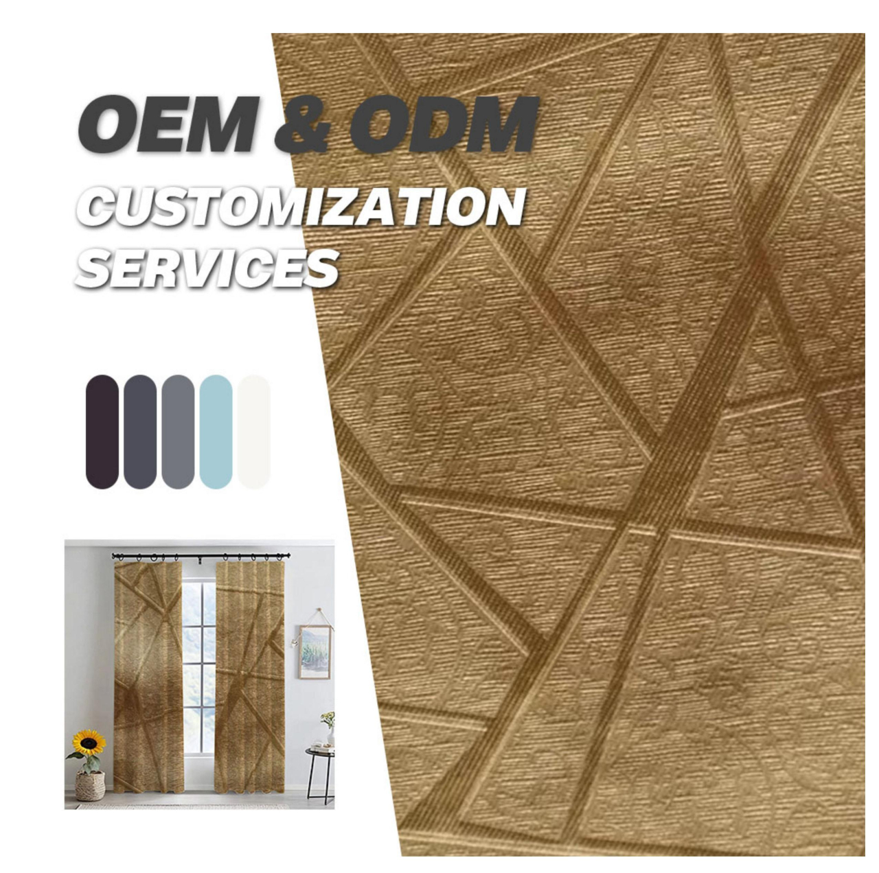 新款跨境亚马逊压花涤纶隔热防晒窗帘布