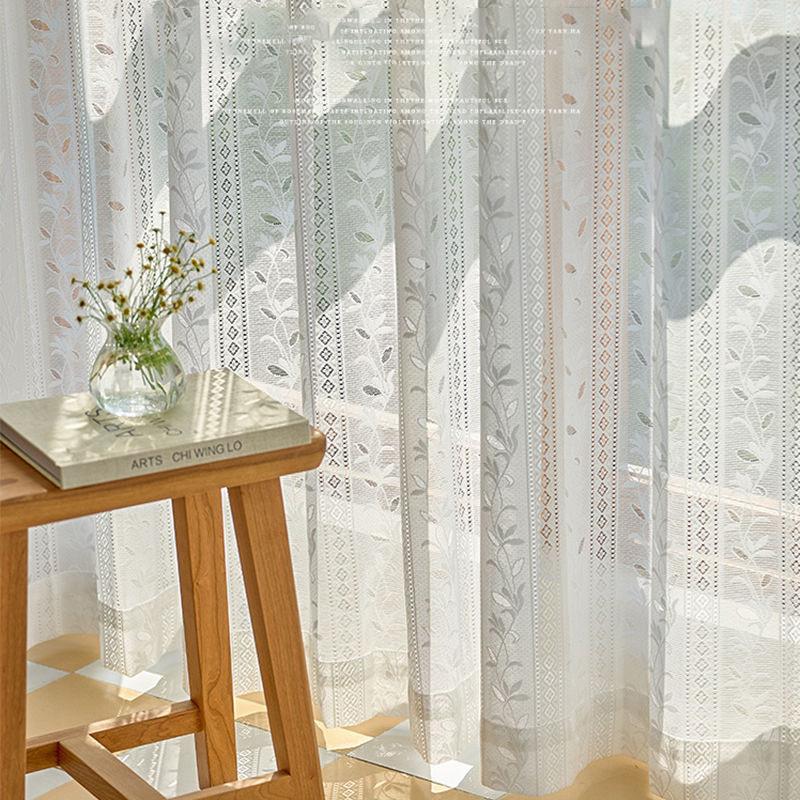 现代简约绣花窗纱帘窗帘纱白纱 花朵绣花纱卧室窗帘成品隔断帘
