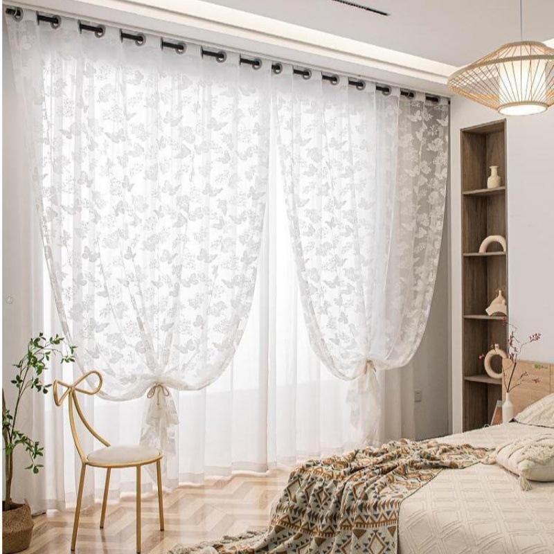 法式浪漫蕾丝经编蝶恋花窗纱客厅卧室白纱帘家用透光不透人窗帘纱