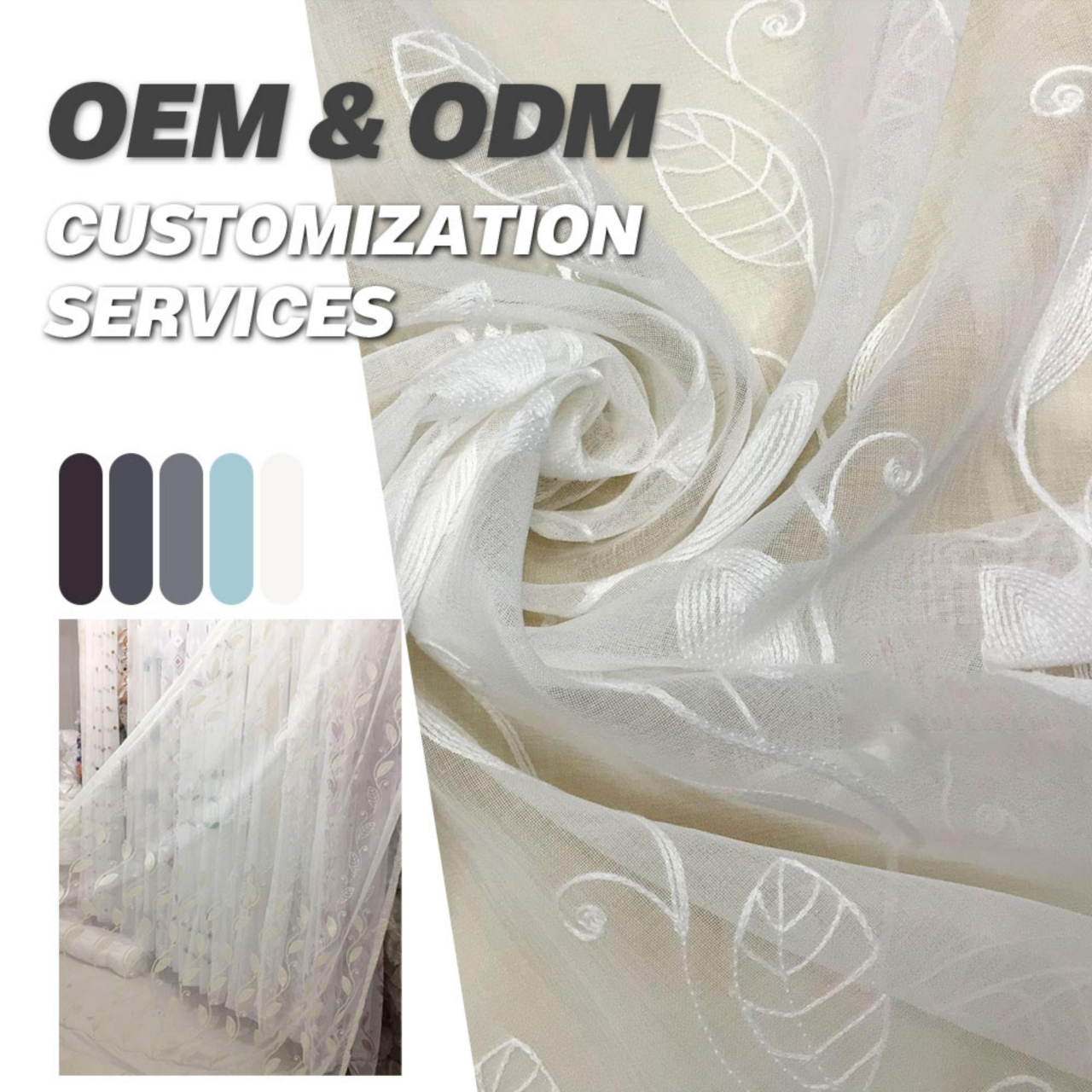 可定制刺绣窗纱薄纱植物窗帘白纱配纱客厅卧室成品