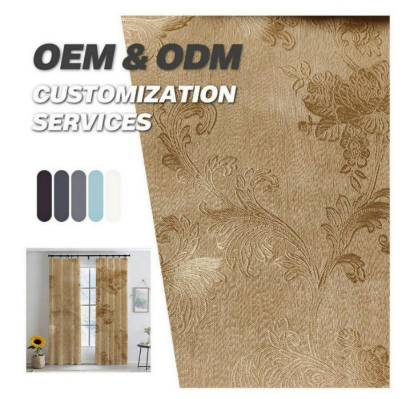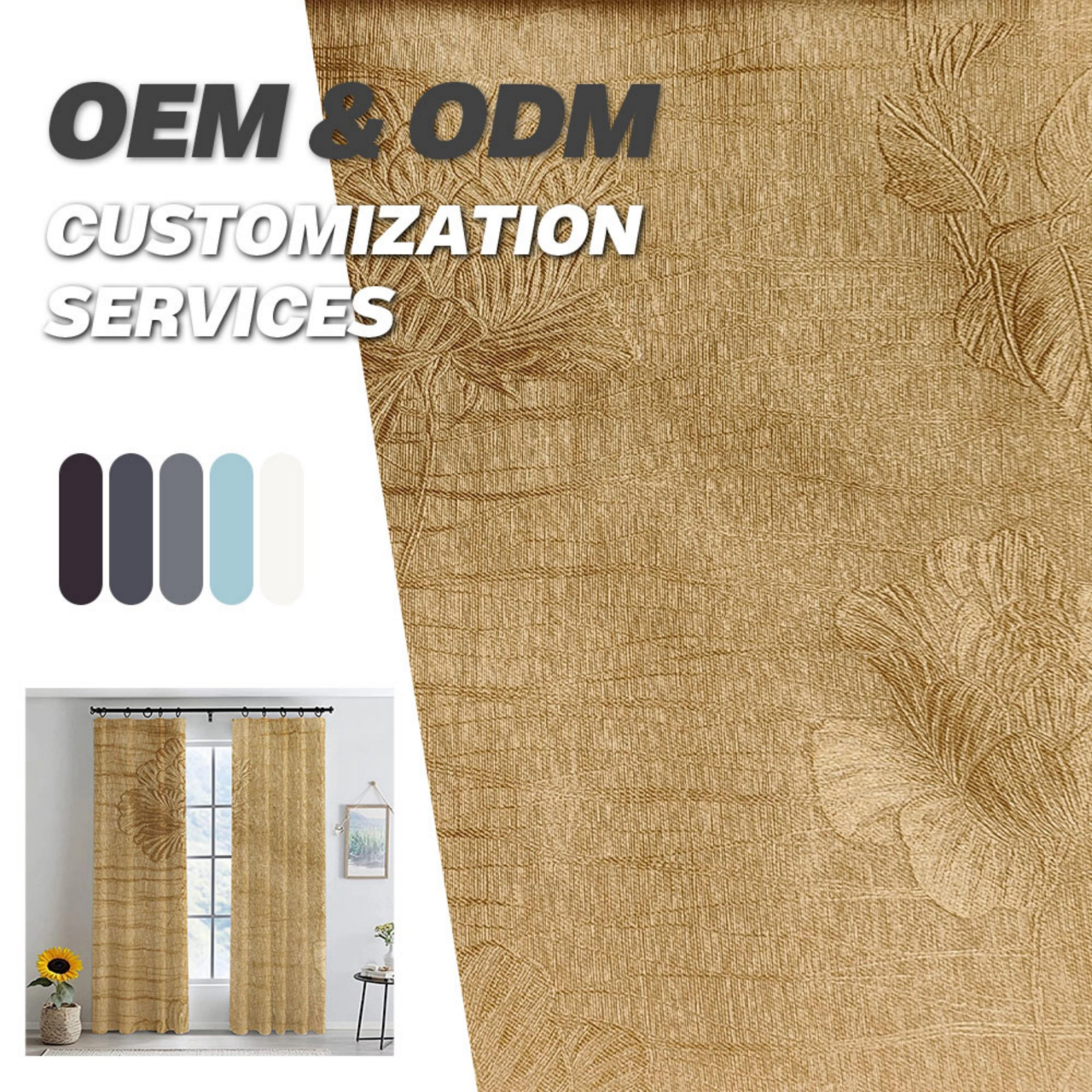 高精密遮光窗帘 加厚加密涤纶面料 3D立体压花持久定型